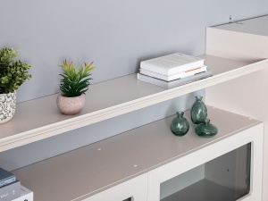 Полка Ричфорд 16.492 представляет собой выдающийся образец коллекции «Ричфорд», которая олицетворяет собой синтез современной классики и функционального дизайна. В данной модели каждая деталь тщательно продумана с целью обеспечения максимального комфорта и эргономики. Использование фрезерованных фасадов из МДФ, в сочетании с высококачественными металлическими ручками и тонированными стеклянными витринами, позволяет достичь изысканного и элегантного внешнего вида, который гармонично вписывается в любой интерьер.