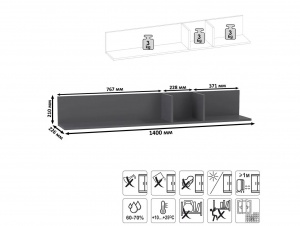 - Габарит ШхГхВ, см 140 х 22.6 х 21