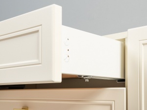Шариковые направляющие (телескопические) - в них используются металлические шарики наподобие тех, что применяются в подшипниках. Есть варианты с доводчиками и без. Плюсы: бесшумное скольжение и плавный ход, полное выдвижение. Минусы: сложность демонтажа/монтажа ящика, цена, требуется смазка.