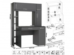 Данная модель оснащена надстройкой с функционально интегрированными открытыми и закрытыми полками, что обеспечивает оптимальное использование доступного пространства и способствует организации рабочего процесса.