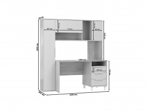 Конструктивные особенности данной модели включают надстройку с интегрированными открытыми и закрытыми полками, что обеспечивает эффективное использование вертикального пространства и способствует созданию оптимальной системы хранения.