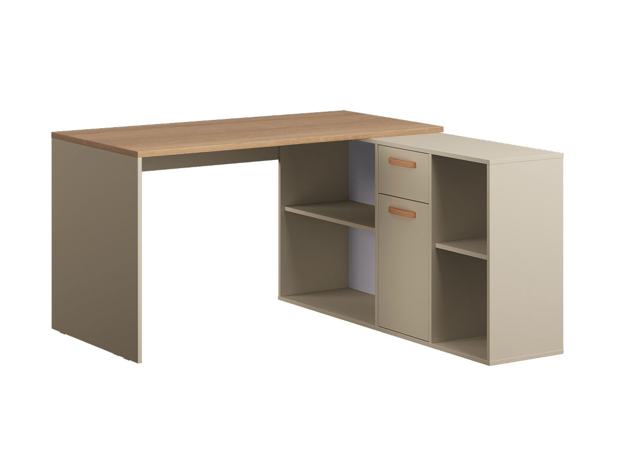 Лайт Стол Письменный 03.245, выполненный в цветовой гамме "Сатин / Дуб эндгрейн", представляет собой многофункциональное рабочее решение, адаптируемое к различным архитектурным и эргономическим условиям. Благодаря модульной конструкции, стол может быть установлен как в угловой, так и в линейной конфигурации, что позволяет оптимизировать использование пространства в зависимости от конкретных потребностей пользователя.