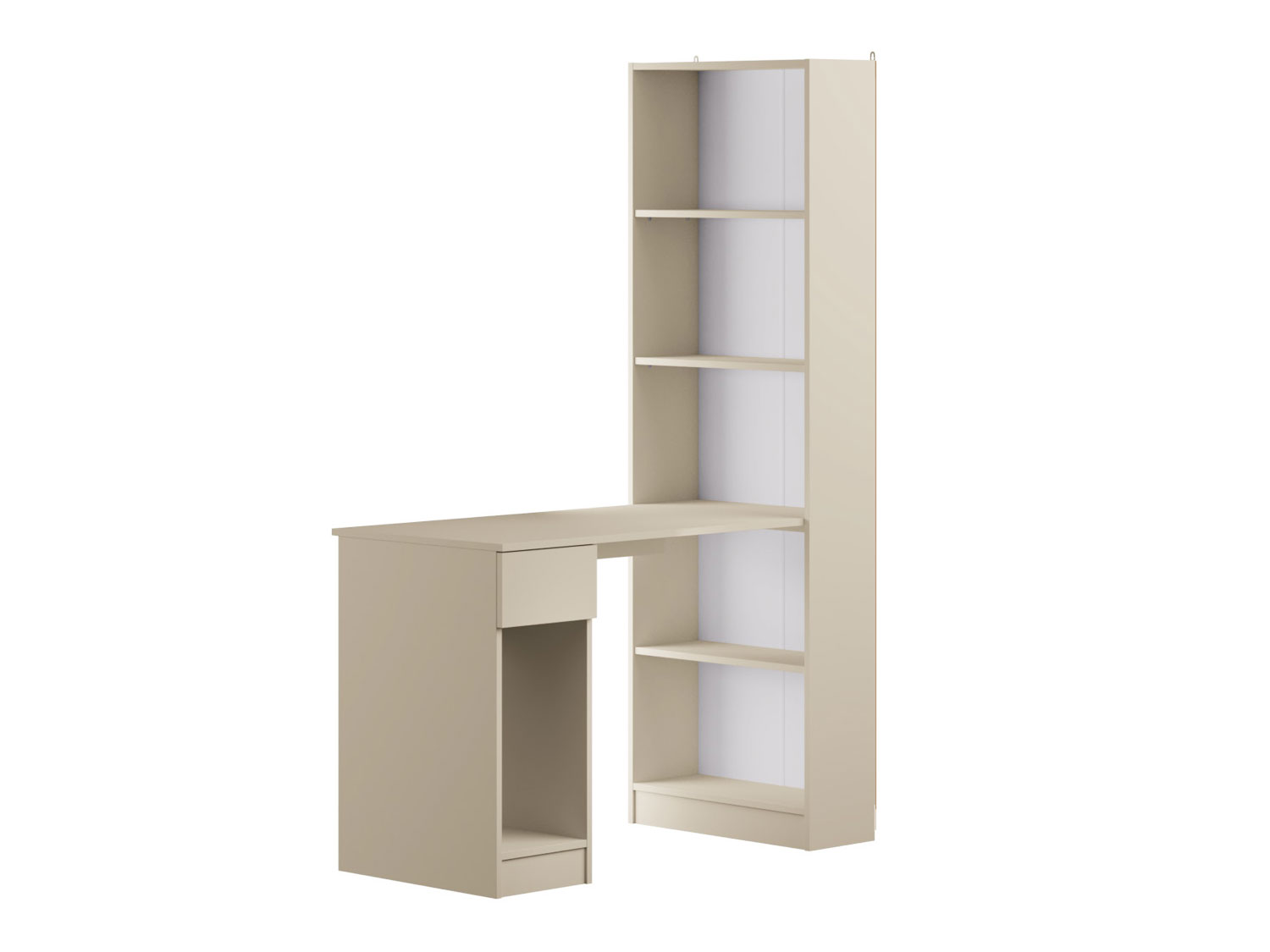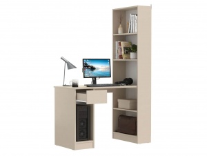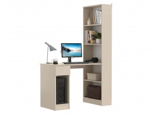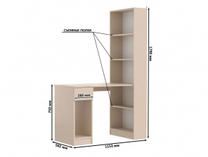 Конструкция шкафа включает вместительный открытый стеллаж, предназначенный для хранения документов, книг и других офисных принадлежностей. Письменный стол, выполненный в эргономичном дизайне, оснащен выдвижным ящиком с шариковыми направляющими полного выдвижения, что обеспечивает удобный доступ к содержимому. Дополнительно предусмотрена ниша под системный блок, что делает модель пригодной для использования в качестве домашнего офиса или рабочего места для школьника.