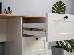 Шариковые направляющие (телескопические) - в них используются металлические шарики наподобие тех, что применяются в подшипниках. Есть варианты с доводчиками и без. Плюсы: бесшумное скольжение и плавный ход, полное выдвижение. Минусы: сложность демонтажа/монтажа ящика, цена, требуется смазка.