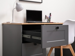 Внутреннее оснащение стола представлено тремя выдвижными ящиками, предназначенными для организации хранения и оптимизации рабочего процесса.