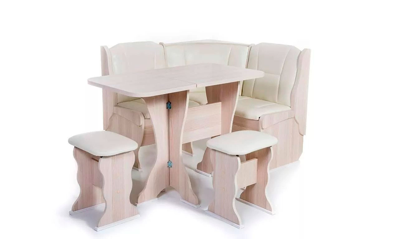Скамьи и угловой сегмент имеют мягкие спинки и сиденья. Под сиденьями расположены вместительные ящики для хранения сопутствующих предметов.