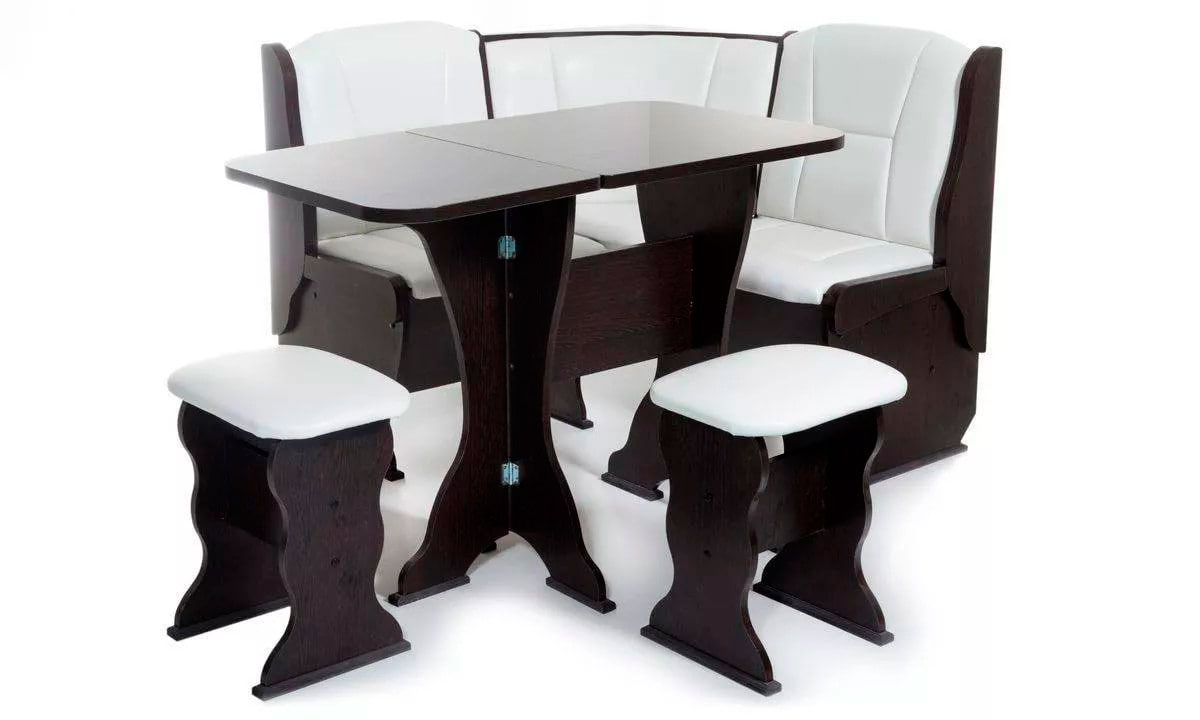 Скамьи и угловой сегмент имеют мягкие спинки и сиденья. Под сиденьями расположены вместительные ящики для хранения сопутствующих предметов.