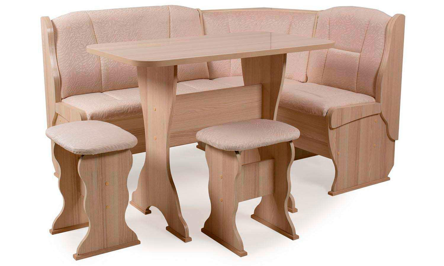 Кухонный набор Орхидея комплектация: угловой диван, стол, 2 табурета Размеры кухонного уголка: Д1500 x 1100; В840 мм Размеры стола: Д1000 x Ш600 х В750 мм. Размеры табурета: Д380 x Ш300 х В450 мм. Кухонный угловой диван с 2 ящиками. Сборка возможна на любую сторону. Столешница стола пластиковая термостойкая.