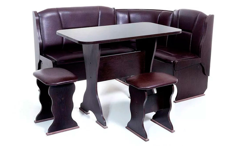 Кухонный набор Орхидея комплектация: угловой диван, стол, 2 табурета Размеры кухонного уголка: Д1500 x 1100; В840 мм Размеры стола: Д1000 x Ш600 х В750 мм. Размеры табурета: Д380 x Ш300 х В450 мм. Кухонный угловой диван с 2 ящиками. Сборка возможна на любую сторону. Столешница стола пластиковая термостойкая.