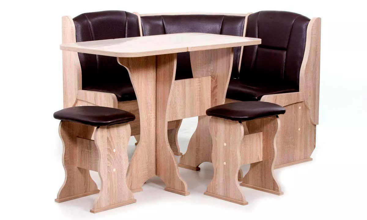 Скамьи и угловой сегмент имеют мягкие спинки и сиденья. Под сиденьями расположены вместительные ящики для хранения сопутствующих предметов.