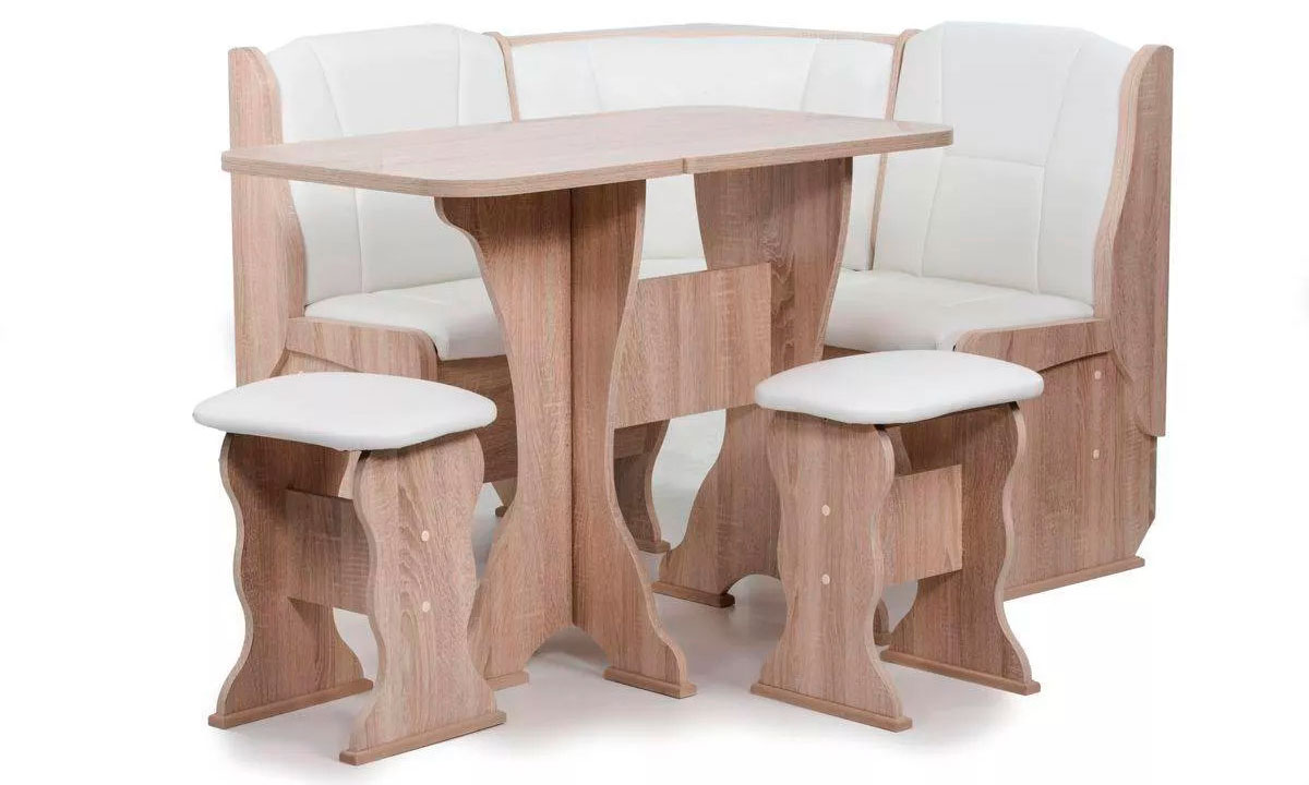 Скамьи и угловой сегмент имеют мягкие спинки и сиденья. Под сиденьями расположены вместительные ящики для хранения сопутствующих предметов.