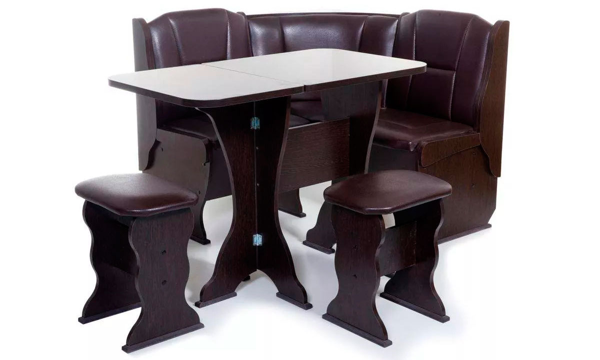 Скамьи и угловой сегмент имеют мягкие спинки и сиденья. Под сиденьями расположены вместительные ящики для хранения сопутствующих предметов.