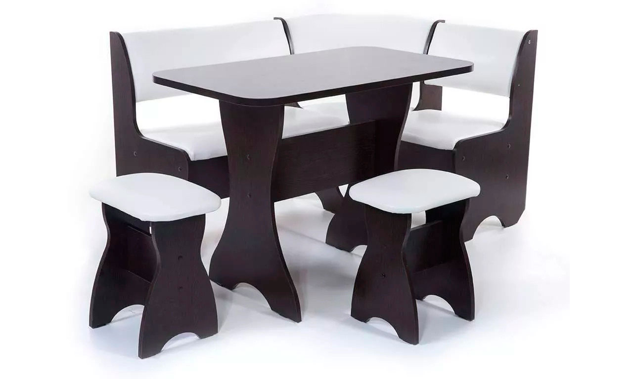 Кухонный набор Тюльпан дополнит мебельный гарнитур Вашей кухни. Он удобен в пользовании, имеет мягкие сиденья и спинки, оборудован ящиками для хранения. В состав набора входят: уголок, стол и две табуретки с мягкими сиденьями.