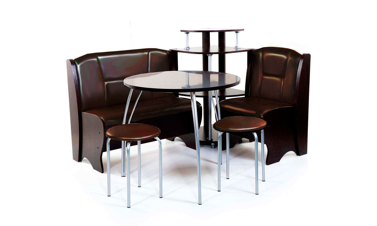 Кухонный набор Лотос - это уют, комфорт и красота Вашей кухни. Набор включает уголок с мягкими сиденьями и спинками, стол и два табурета.