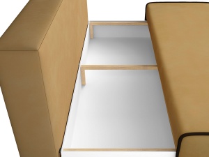 Это встроенное отделение или выдвижной ящик, который используется для хранения постельного белья, одеял, подушек или других вещей. Такой ящик обычно располагается под сиденьем дивана.