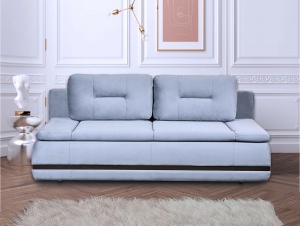 Диван оснащен механизмом трансформации еврокнижка, который прост и надежен в эксплуатации. Использование в механизме трансформации прорезиненных колес облегчает выдвижение сидения, увеличивает срок службы изделия, удобство при эксплуатации. Каркас сборный, в конструкции применены различные виды древесных материалов - экологически чистые материалы, придающие надежность конструкции, качество, долговечность. В основании дивана имеется вместительный ящик для белья.