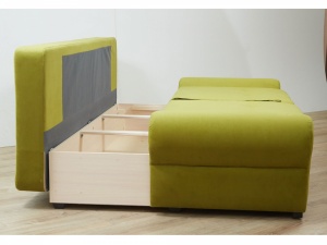 Каркас сборный, в конструкции применены различные виды древесных материалов - экологически чистые материалы, придающие надежность конструкции, качество, долговечность. В диване предусмотрен вместительный бельевой ящик, в котором установлены вентиляционные устройства.