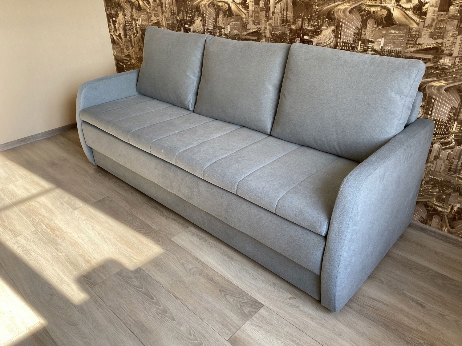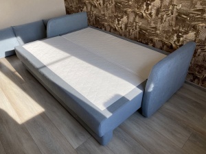 Диван пришел без брака, сделали в срок. Хорошо подошел для маленькой комнаты, глубина всего 90см, спальное место достаточно большое для такого размера. Мягкий на ощупь.