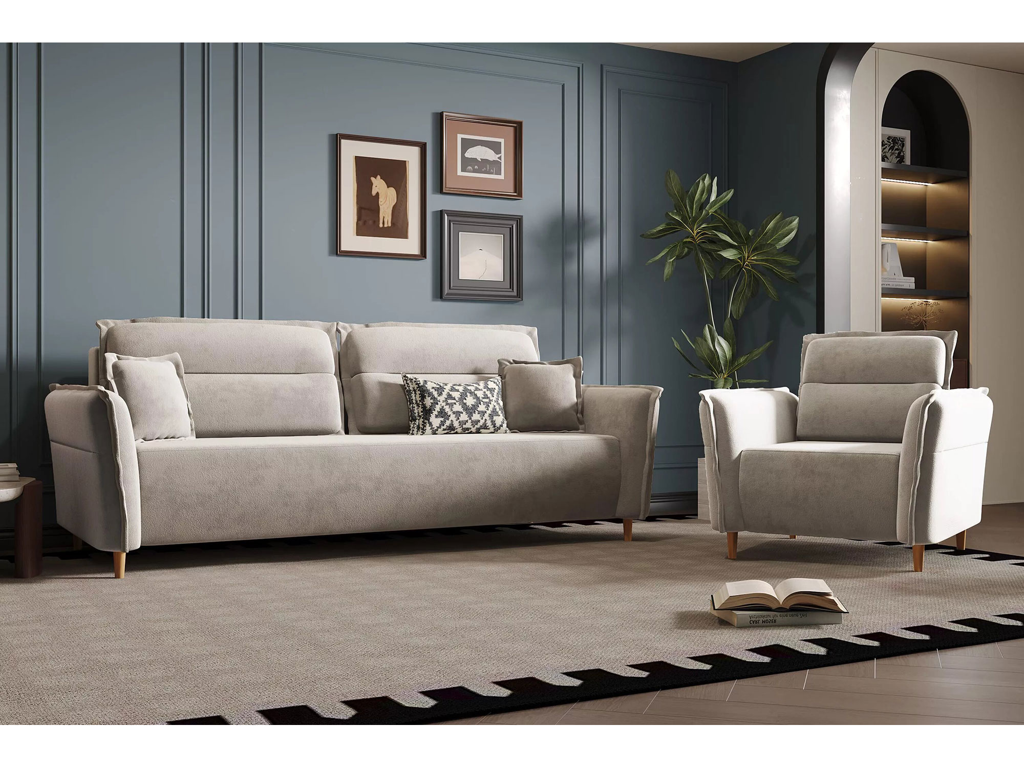 Мебель имеет механизм, который позволяет диван или кресло превратить в полноценное спальное место.