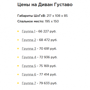 Габарит ШхГхВ, см: 97, 107, 147, 167, 182, 207 х 110 х 85