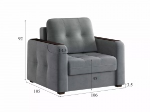 Модель отличается минималистичным дизайном, не перегруженным декоративными элементами, что позволяет ей гармонично интегрироваться в большинство современных интерьерных решений. Для тех, кто предпочитает более традиционный подход, предлагается вариант кресла без механизма трансформации, но с сохранением бельевого ящика, что обеспечивает дополнительную гибкость в выборе мебели.
