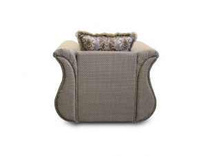Модель имеет мягкие изогнутые подлокотники, декорирована басонными изделиями (кисти, кант, бахрома), позволяющими подчеркнуть достоинства мебельного текстиля.