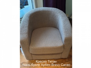 Привезли кресло «Титан» , которое я заказывала. Время ожидания - 1 неделя, несмотря на то, что на сайте указано 14 дней. Ткань выбрала из предложенного каталога тканей, ту, что очень хотела (букле, цвета какао с молоком). Кресло небольшое, легкое, добротное! Доставка приехала в оговоренный промежуток времени. Спасибо большое за чудесное кресло! Оно именно такое, как мне мечталось.