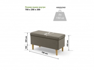 Конструкция банкетки имеет прямоугольную форму с откидным сиденьем, обеспечивающим эргономичность и удобство использования. Встроенные элементы, такие как вместительный вместительный ящик, предоставляют дополнительные возможности для хранения, что делает эту модель многофункциональной и универсальной для различных типов помещений.