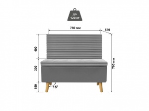 Эргономичное сиденье дивана выполнено в форме прямоугольника, обеспечивая максимальный комфорт при использовании. Под сиденьем расположен вместительный ящик для хранения, позволяющий оптимизировать пространство и поддерживать порядок в помещении.