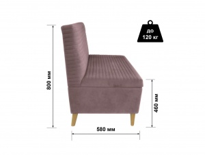Сиденье дивана выполнено в форме прямоугольника, обеспечивая повышенный уровень комфорта за счет оптимальной анатомической поддержки. Под сиденьем расположен вместительный ящик для хранения, что позволяет эффективно использовать пространство и способствует рациональной организации интерьера.