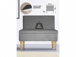 Сиденье дивана выполнено в форме прямоугольника, обеспечивая повышенный уровень комфорта за счет оптимальной анатомической поддержки. Под сиденьем расположен вместительный ящик для хранения, что позволяет эффективно использовать пространство и способствует рациональной организации интерьера.