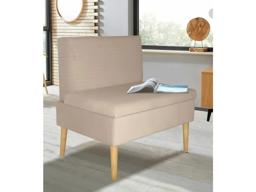 Сиденье дивана выполнено в форме прямоугольника, обеспечивая повышенный уровень комфорта за счет оптимальной анатомической поддержки. Под сиденьем расположен вместительный ящик для хранения, что позволяет эффективно использовать пространство и способствует рациональной организации интерьера.