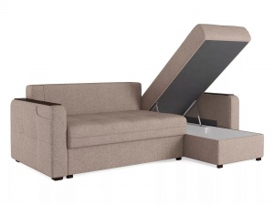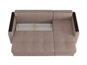 Механизм раскладывания "пантограф", интегрированный в конструкцию дивана, обеспечивает беспроблемное превращение изделия в полноценную кровать без необходимости перемещения от стены. Эргономичные накладки на боковых панелях создают идеально ровную поверхность, что делает возможным размещение на диване предметов, таких как чашка кофе. В подлокотнике предусмотрен специальный карман для хранения ТВ-пульта или смартфона, что значительно повышает удобство эксплуатации.
