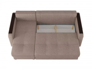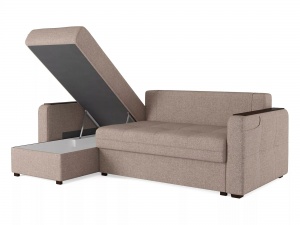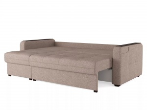 Механизм раскладывания "пантограф", интегрированный в конструкцию дивана, обеспечивает беспроблемное превращение изделия в полноценную кровать без необходимости перемещения от стены. Эргономичные накладки на боковых панелях создают идеально ровную поверхность, что делает возможным размещение на диване предметов, таких как чашка кофе. В подлокотнике предусмотрен специальный карман для хранения ТВ-пульта или смартфона, что значительно повышает удобство эксплуатации.