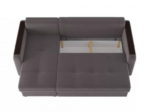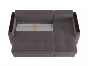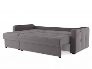 Механизм раскладывания "пантограф", интегрированный в конструкцию дивана, обеспечивает беспроблемное превращение изделия в полноценную кровать без необходимости перемещения от стены. Эргономичные накладки на боковых панелях создают идеально ровную поверхность, что делает возможным размещение на диване предметов, таких как чашка кофе. В подлокотнике предусмотрен специальный карман для хранения ТВ-пульта или смартфона, что значительно повышает удобство эксплуатации.