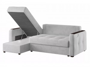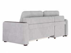 Механизм раскладывания "пантограф", интегрированный в конструкцию дивана, обеспечивает беспроблемное превращение изделия в полноценную кровать без необходимости перемещения от стены. Эргономичные накладки на боковых панелях создают идеально ровную поверхность, что делает возможным размещение на диване предметов, таких как чашка кофе. В подлокотнике предусмотрен специальный карман для хранения ТВ-пульта или смартфона, что значительно повышает удобство эксплуатации.
