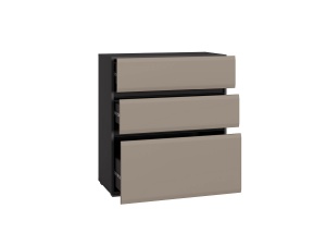 Дизайн фасадов выполнен в минималистичном стиле, что соответствует современным тенденциям. Отсутствие лицевой фурнитуры придает изделию лаконичность и визуальную легкость. Открытие фасадов осуществляется двумя способами: за край или посредством механизма push-to-open, что обеспечивает удобство использования и повышает эргономичность.