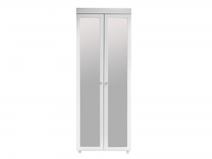 Двухдверный шкаф из серии Монако с красивым карнизом и зеркалами на дверях во весь рост. Шкаф комплектуется 2 полками и горизонтальной штангой (полки не съемные).