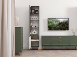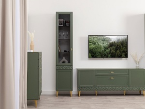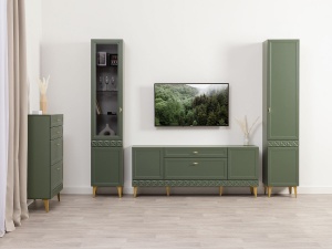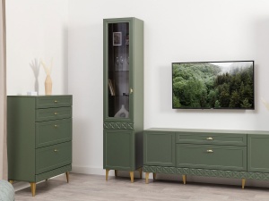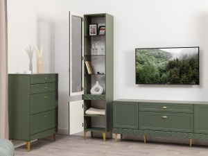 Шкаф-витрина Марион 16.397.01, Дымчатый зеленый / Олива шагрень