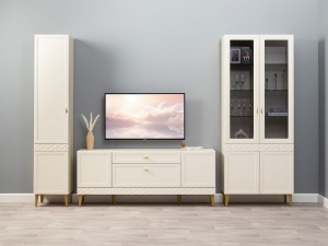 Данная модель отличается элегантным и эргономичным дизайном, что делает её привлекательным элементом интерьера. Фасады изделия выполнены с использованием утонченной декоративной отделки, придающей шкафу изысканный вид.