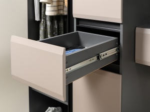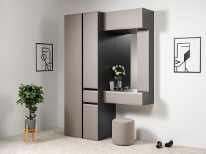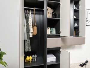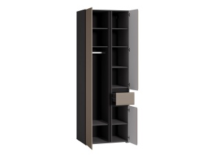 Дизайн шкафа отличается использованием комбинированной цветовой гаммы, что позволяет гармонично интегрировать его в различные интерьерные стили и создавать визуально привлекательные решения для организации домашнего пространства.