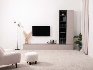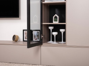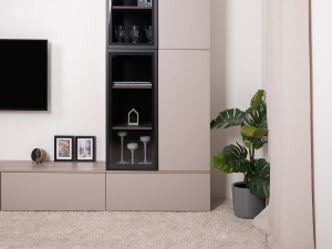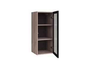 Данная модель характеризуется изысканным и современным внешним видом, который достигается благодаря тщательно продуманной концепции дизайна и высокому качеству исполнения. Стеклянная дверца шкафа-витрины не только выполняет декоративную функцию, но и обеспечивает доступ к трем внутренним полкам, предназначенным для хранения различных предметов.