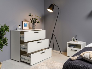 Эйр комод модели 16.242 в белом цвете является оптимальным дополнением для интерьера спальной комнаты.