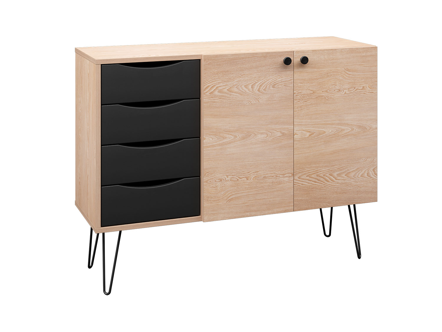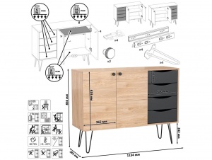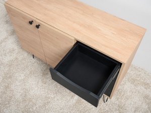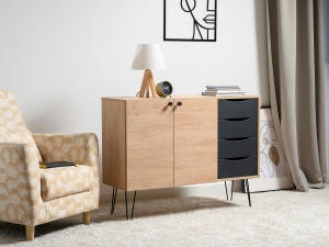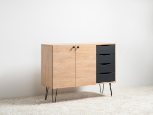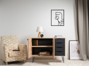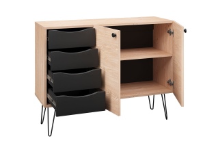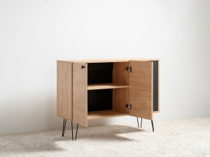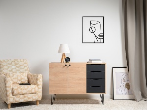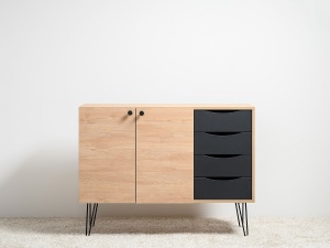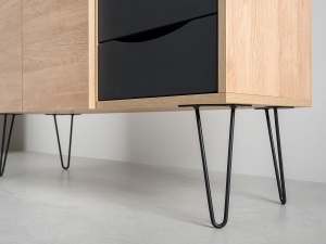 Комод Брюс, обладающий лаконичным и элегантным дизайном, на высоких металлических опорах представляет собой оптимальное решение для интеграции в интерьер современной гостиной, спальни или прихожей.