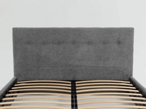 Конструктивные особенности кровати включают в себя массивную и мягкую головную спинку, украшенную декоративными элементами в виде кнопок. Такая деталь не только придаёт изделию уникальный внешний вид, но и обеспечивает дополнительный комфорт во время отдыха.